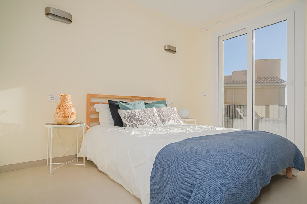 New construction villas from the prestigious developer. The villas are located near the beach and are existing in a community. The houses are equipped with three bedrooms and two bathrooms en suite and have a large balcony facing south. Also a garden area with a terrace section. The new construction is installed with central heating by heat pump.
