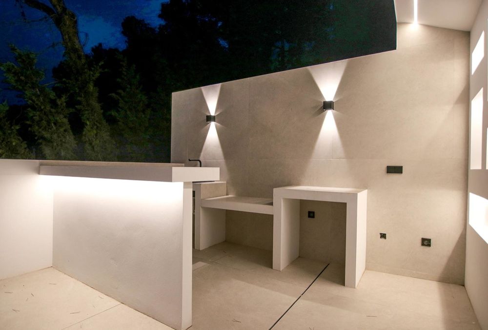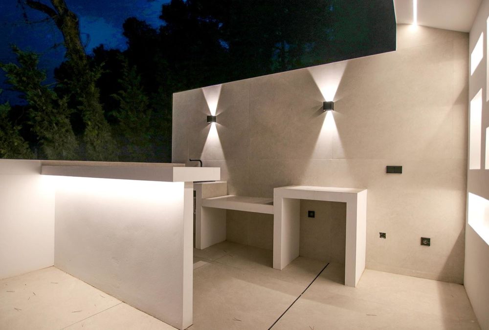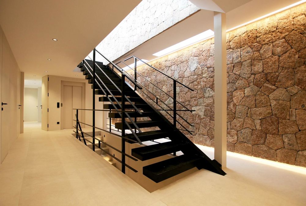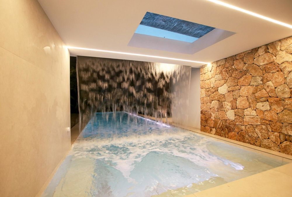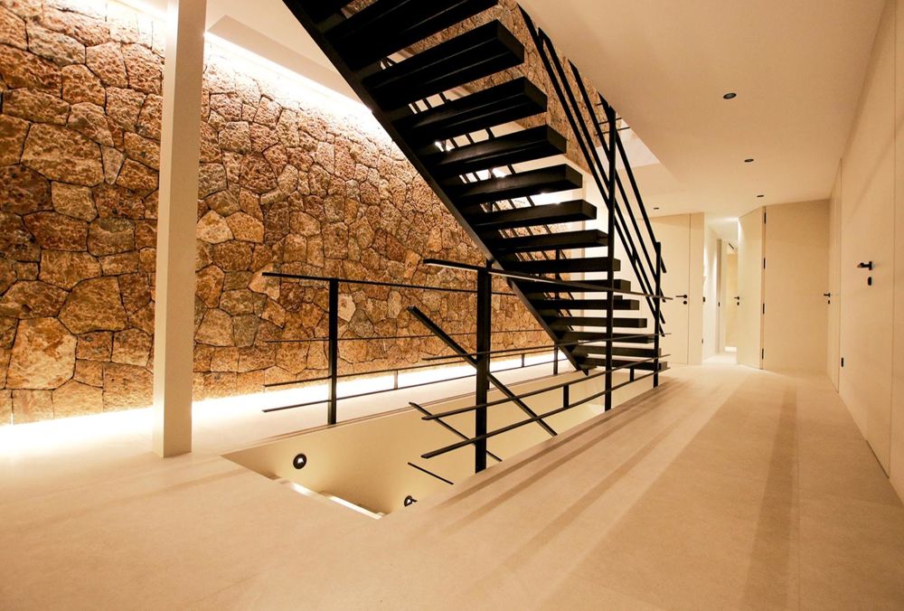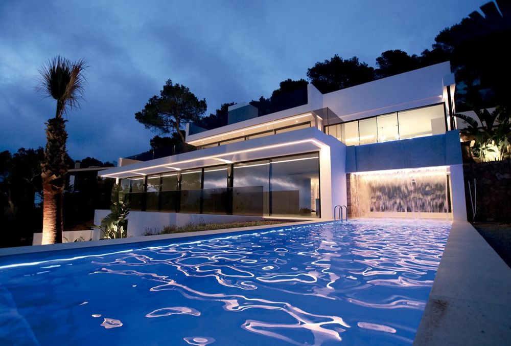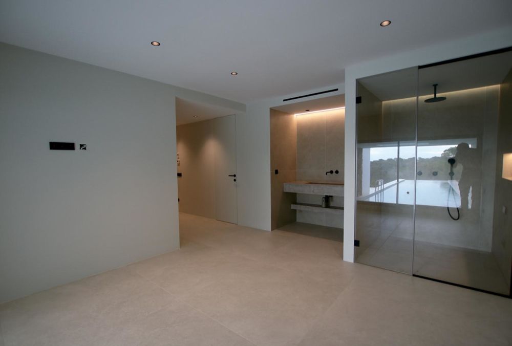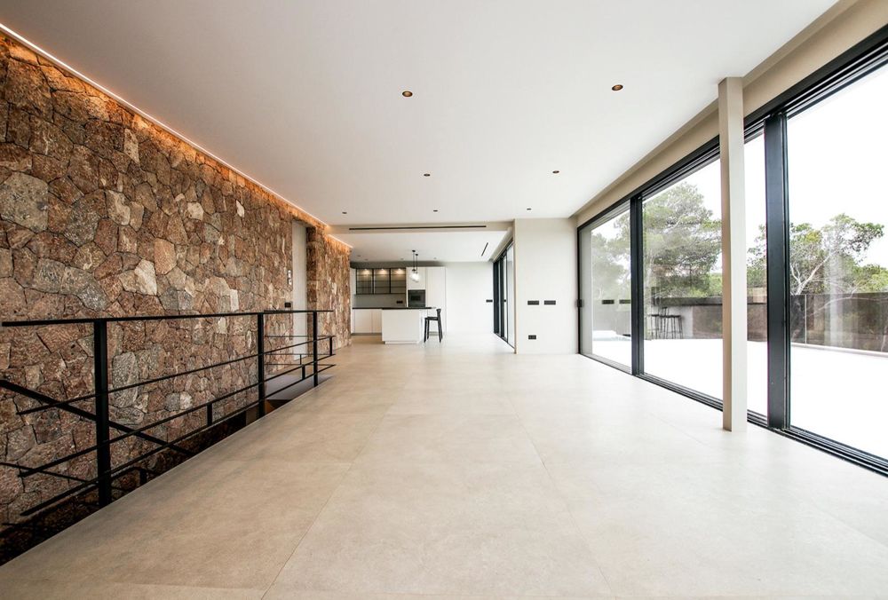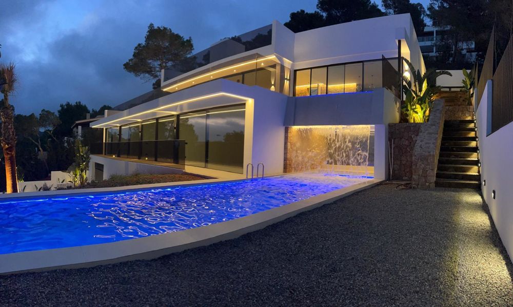 Modern newly built villa located in the up-and-coming northwest area of the island, near Cala Salada, featuring a cascading pool and uninterrupted sunset views. The property offers five spacious double bedrooms, each with its own en-suite bathroom, situated on the upper floor. The main floor boasts a large open-plan living and dining area along with a fully integrated kitchen that spans the entire length of the house. The home is fully equipped with underfloor heating and individually controlled air conditioning in each room. The expansive garage accommodates at least six vehicles and also has the potential to be converted into a private cinema or gym. A vast rooftop terrace provides additional outdoor parking space if needed. Highlights of this property include an elevator connecting all levels and a stylish waterfall flowing from the jacuzzi into the pool—perfect for enjoying the sunset all year round. This exclusive villa is located just a short distance from the popular Cala Salada, renowned for its crystal-clear waters and charming beach bar. San Antonio, with its variety of shops and vibrant nightlife, is around a ten-minute drive away. The airport is approximately 30 minutes away by car, while Ibiza Town can be reached in about 25 minutes. Numerous other popular beaches along the west coast are just 15 to 25 minutes away by car.