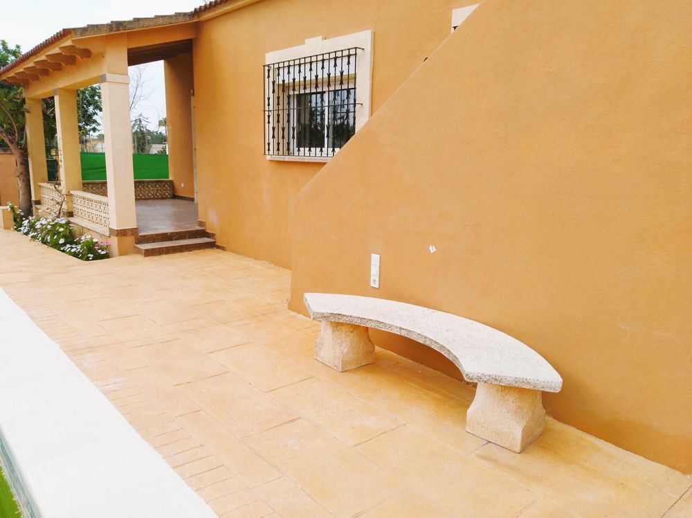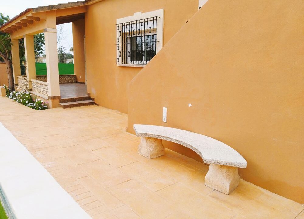 Adjacent to a green area and with only one neighboring property, privacy is guaranteed. The exterior also features an 8×4 meter swimming pool, surrounded by 380 m² of terraces and refurbished stamped concrete walkways, offering a modern and functional design. There is also the option to install air conditioning in the bedrooms for additional comfort.