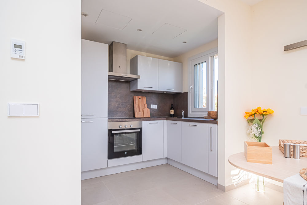 Chalets de un promotor de renombre. Los chalets están situadas cerca de la playa y forman parte de una comunidad. Las casas están equipadas con salon -/ comedor, cocina, tres dormitorios, dos baños en suite y tienen un gran balcón orientado al sur. También una zona ajardinada con una sección de terraza.