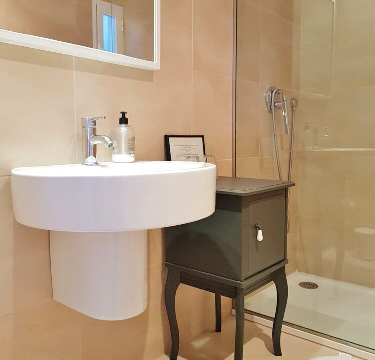 In der 2. Etage befinden sich ebenfalls 2 Schlafzimmer und 1 Badezimmer, sowie ein großes Wohnzimmer ebenfalls mit Zutritt zu einer Sonnenterrasse und zur Dachterrasse, wo man einem herrlichen Blick auf das Meer und Palma hat.